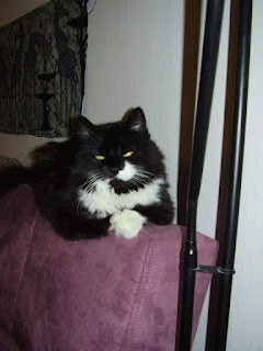 Talouden ainoana kissana, erossa Aukustin ajoittaisesta öykkärikäytöksestä, ennen syrjäänvetäytyneestä Hermannista kuoriutui erittäin sosiaalinen ja ihmisrakas kämppis, jonka lempipaikka oli tuossa sohvan selällä, selkäni takana kun istuin läppärillä tietokonepöydän ääressä. Hän pysyi myös aina olohuoneessa, kun minulla oli vieraita.
